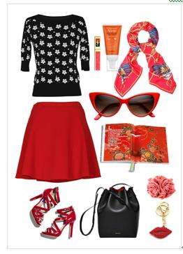 搭配二:下身搭配大紅色A版短裙,青春洋氣,氣質(zhì)減齡~~