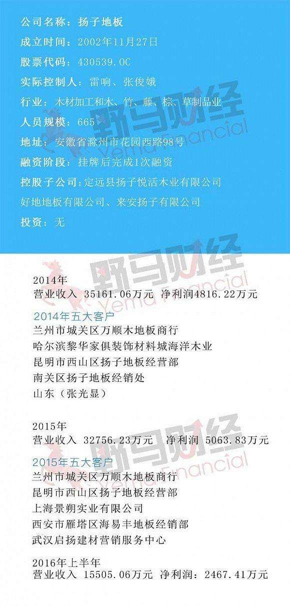 對投資人而言,揚子地板要是能順利過會,不僅市值翻番,更加重要的是,相比流動性較差的新三板,退出也變得異常輕松。不過,目前也僅僅只伸進了一只腳而已,要想真正走進中小板,也不太容易,畢竟還得核查、排隊呢!