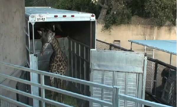 長頸鹿被裝進了開放式卡車(網(wǎng)友供圖)