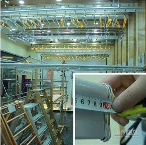 實(shí)地測量晾衣架雙桿的長度,與標(biāo)準(zhǔn)尺寸2.4m基本符合,誤差在允許范圍內(nèi)。