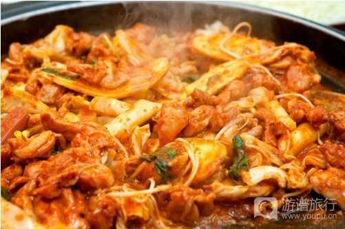 在韓國一提到“鐵板雞”就會想到江原道春川,因為鐵板雞的老家就在春川,很多鐵板雞餐館招牌上都會加上“春川鐵板雞”幾個字,春川家鐵板雞蕎麥面是其中比較著名的一家。推薦芝士辣炒雞排。