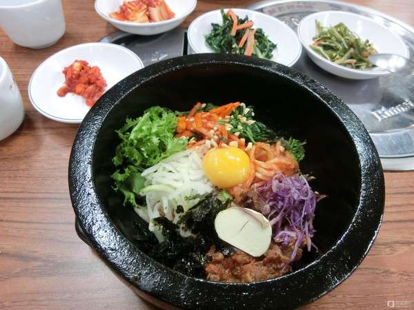 全州中央會館(明洞總店)擁有50年歷史,最引以自豪的便是全州石鍋拌飯,用春菊、蘑菇、芹菜、桔梗、蕨菜、栗子、松果、銀杏等食材,加上雞蛋、牛肉與特色醬料,熱騰騰香噴噴。