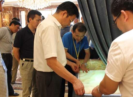 在對展廳、生產(chǎn)車間的參觀過程中,高副市長對歐神諾寶玉系列產(chǎn)品產(chǎn)生了濃厚的興趣。通過介紹得知,歐神諾的玉質(zhì)產(chǎn)品是全球首創(chuàng),注入了非常多的獨有工藝,比如