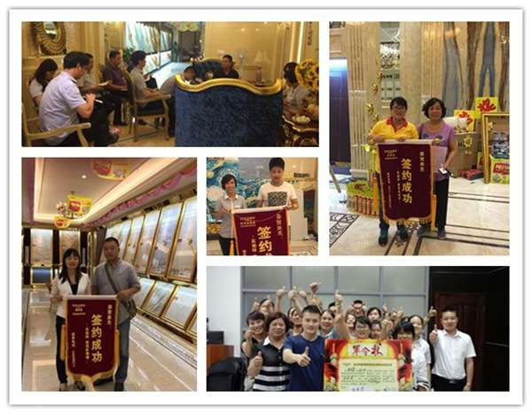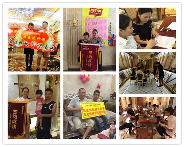 其經(jīng)銷商王總,通過向銀行貸款,向親朋籌集資金,力爭打造梅州標桿奢瓷體驗館。為提高歐神諾知名度,在各賓館、酒店甚至是同行的店面門口布滿廣告牌,并通過微信推廣在各大樓盤的業(yè)主群里廣發(fā)紅包,加之老客戶助力,最終收現(xiàn)近90萬,甚至將明年7月份的客戶訂單都收入囊中!