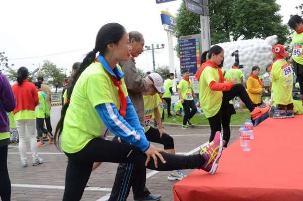 正式開跑前,由我們的美女健身教練帶領大家一起做跑前熱身操,避免在跑步過程中造成拉傷。在教練的口號聲中,大家開始了熱身操活動,現(xiàn)場成一片歡樂的海洋。