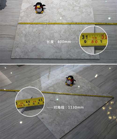 經(jīng)小編現(xiàn)場對(duì)這款羅馬寶石進(jìn)行測量發(fā)現(xiàn),該羅馬寶石長寬均為800mm,對(duì)角線為1130mm,厚度為11mm,符合標(biāo)準(zhǔn)。