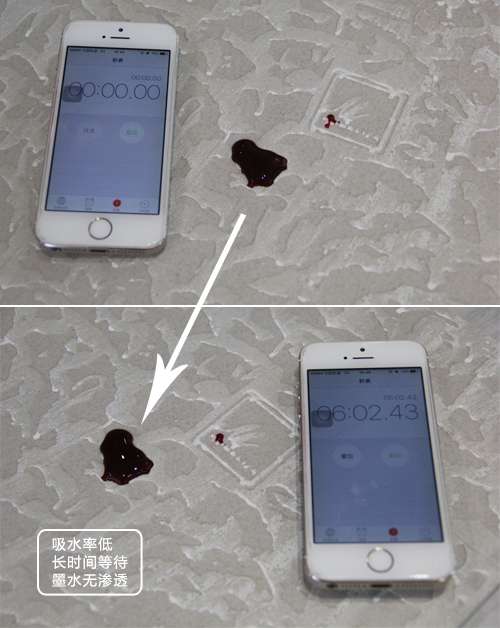 一般來說,只有密度高,質(zhì)量上乘的瓷磚才能使水液呈滾珠狀,小編在這款羅馬寶石瓷磚的背面倒上紅墨水,靜待幾分鐘后,發(fā)現(xiàn)水團(tuán)沒有散開或變少,足以證明這款瓷磚吸水率低,具有很好的防水性能。