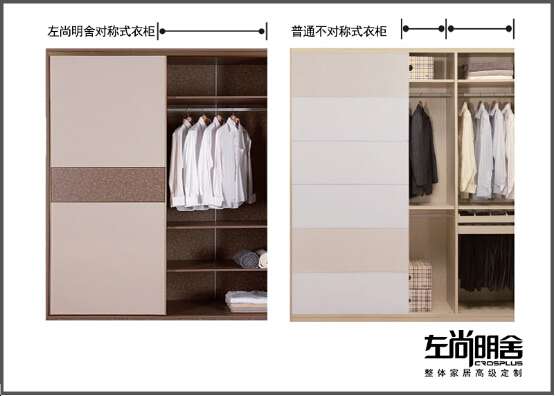 市面上普通定制的移門衣柜,大多采用單元柜組合的方式實現(xiàn)柜體寬度的變化。例如,有A、B、C三種單元柜,B柜的寬度可調(diào)節(jié),只要改變B柜的寬度就能應(yīng)對客戶對整個柜子寬度定制的需求,其他單元柜是固定的。這樣再裝上移門,很容易產(chǎn)生推開門卻有一截柜子空間被門擋住的尷尬,既不美觀又不方便。而左尚明舍絕不能容忍對此將就,他家的柜子沒有幾個單元柜組合之說,屬于完全的量身定制,從而實現(xiàn)柜體完全等分。只要輕輕推開移門,就能100%呈現(xiàn)柜內(nèi)空間,衣物一目了然,毫無死角。這項技術(shù)也是高級定制的標(biāo)志之一。