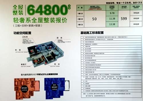 據(jù)工作人員介紹,業(yè)之峰全屋整裝在價格上共分為兩個系列:輕奢系列——套內(nèi)面積50平米97800元起,多出的面積按照599元/平方米計價;極致系列——套內(nèi)面積50平米112800元起,多出的面積按照799元/平方米計價。兩者主材等級不同,家具、軟裝產(chǎn)品相同,裝修收取管理費,稅金另算。