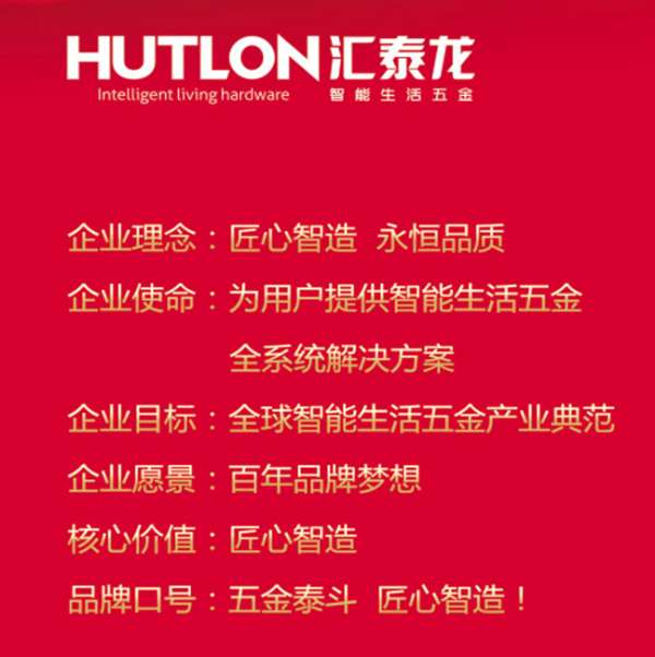 在匯泰龍品牌走過(guò)二十周年之際,智能家居時(shí)代賦予匯泰龍新的使命和定義:打造國(guó)際高端智能生活五金第一品牌!延續(xù)求實(shí)、向上、敬業(yè)、和諧的文化根基,傳承匯泰龍20年輝煌底蘊(yùn)及品牌影響力。
