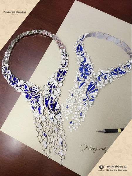 通過設(shè)計(jì)圖紙,鑄蠟、銀版、執(zhí)模、鑲石、烤琺瑯、拋光、電金調(diào)位等制作工藝,實(shí)現(xiàn)琺瑯與鉆石的完美融合。《往事碎片》憑借在傳統(tǒng)文化中汲取靈感的創(chuàng)意,斬獲2015香港JMA國(guó)際珠寶設(shè)計(jì)大賽冠軍寶座,也是金伯利鉆石中國(guó)風(fēng)系列參加巴塞爾世界鐘表珠寶展的作品之一。