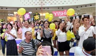 福利不間斷!韓庚還在現(xiàn)場人群中抽取2名幸運粉絲,共同進行以純馬術系列啟動儀式,瞬間引爆全場沸點,呼聲一浪高過一浪!