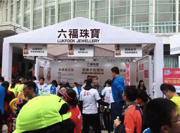 活動(dòng)當(dāng)日,六福珠寶免費(fèi)為完賽選手完成了近2000枚獎(jiǎng)牌刻字,選手們剛跑完還未來得及休息就匆匆忙忙趕到展臺(tái)排隊(duì),每位選手都想獲得專屬自己的完賽獎(jiǎng)牌,刻字內(nèi)容除了常規(guī)的自己名字外,還有求婚的、表白的、結(jié)婚紀(jì)念日的還有許多寫下自己堅(jiān)持的格言的,馬拉松是賽事,更是一種傳達(dá)堅(jiān)持傳播正能量影響力的文化精神。