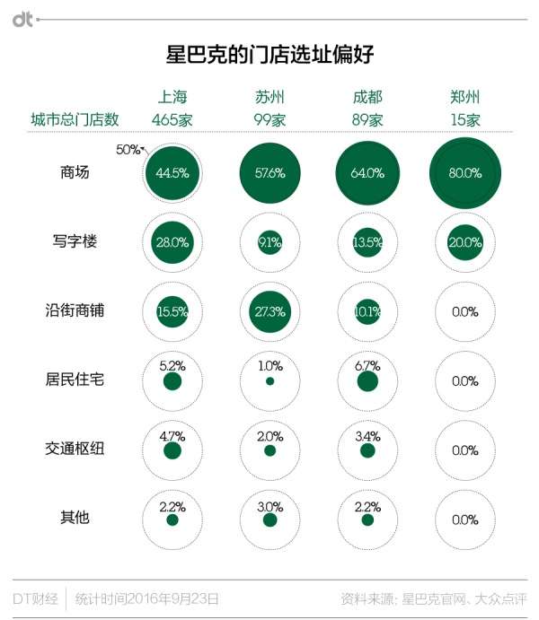 為了考察星巴克在各類城市開門店的策略究竟有什么不同,綜合星巴克官網和