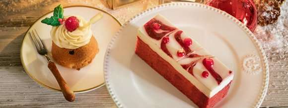 點(diǎn)心方面,咸點(diǎn)有火雞紅莓意大利軟包、西班牙辣肉腸番茄干蛋批;圣誕限定中的甜點(diǎn)部分由紅莓紅絲絨蛋糕、香橙朱古力蛋糕配香橙糖漿擔(dān)當(dāng)。