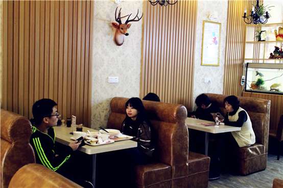 簡(jiǎn)潔明快的裝修,進(jìn)入店門就是一個(gè)在很多餐飲店并不多見的洗手臺(tái),可見店主的極致用心。皮制卡座柔軟舒適,配上幾幅現(xiàn)代化的裝飾畫、幾只工藝鹿首壁掛,細(xì)致典雅的氣氛在暖色的燈調(diào)中小有情趣。