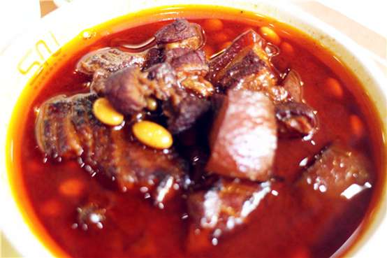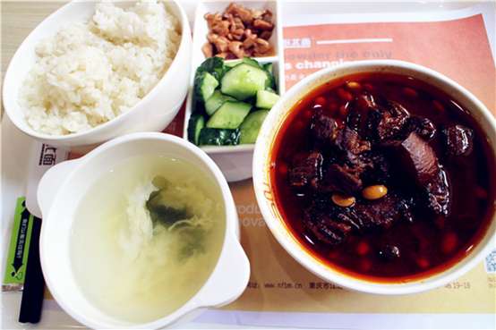 其實(shí)小編最愛的還是燜煲紅燒肉套飯。光是看著這一大碗濃油赤醬的紅燒肉就足以夯下兩碗米飯了。不同于常州人偏甜的口感,這里的紅燒肉帶了點(diǎn)重慶的鮮辣滋味,紅湯拌飯,再加上幾口已經(jīng)燉煮的肥而不膩、瘦而不柴的五花肉,簡(jiǎn)直堪稱極品啊!