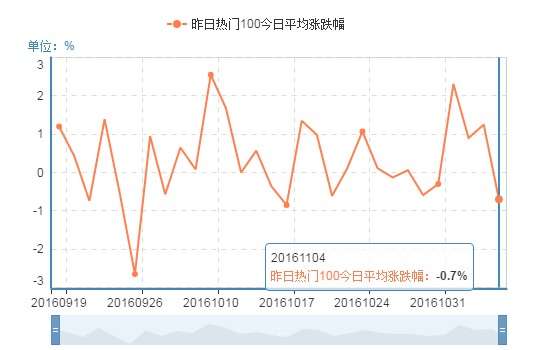 昨日前100熱門股今日表現極度萎靡,表明市場情緒極度悲觀,賺錢效應極差,在震蕩行情中往往有絕處逢生的表現,次日上漲概率較大;