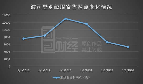 占據(jù)羽絨服市場半壁江山的波司登日子也不好過。最近三年營業(yè)收入持續(xù)下滑,凈利潤從2012年時的14.36億元下跌到當(dāng)前的2.8億元,已經(jīng)跌幅八成。