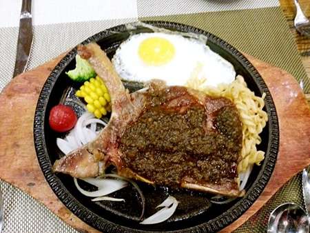 推薦的兩款牛排,左圖本店特色戰(zhàn)斧牛排,因?yàn)榕E诺男螤畋容^像戰(zhàn)斧,所以叫這個(gè)名字,據(jù)說一頭牛只能做出14塊戰(zhàn)斧牛排,所以供應(yīng)量比較少。肉質(zhì)口感比較緊實(shí)會(huì)有一點(diǎn)肥的,上面醬料的味道像是一種很熟悉的調(diào)料味。右圖就是大家都會(huì)很熟悉的西冷牛排,嫩嫩的口感,西冷牛排的特色,大家應(yīng)該都會(huì)比較喜歡。我想說那個(gè)煎蛋不錯(cuò),火候剛好。