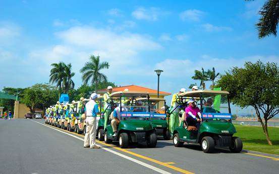 隊際賽決賽日第一天,銀海高爾夫的天氣似乎有點深秋的感覺,氣溫較之前有些下降,涼意襲人。微風(fēng)拂面,球員信心滿滿踏上了自己的“戰(zhàn)車”,前往比賽場地。