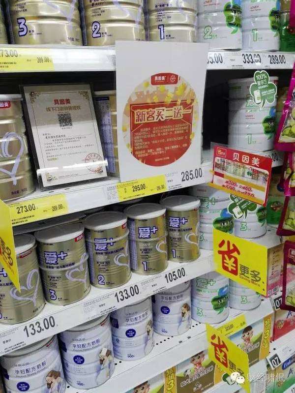 作為一家老牌奶粉企業(yè),貝因美今年推出了愛+red,但五谷君在部分商超中并未尋覓到愛+red的身影,但貝因美金愛+以及綠愛+,和其他奶粉品牌一樣,也在促銷中。