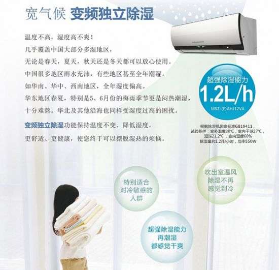 三菱電機1.5匹全直流變頻1級能效壁掛式冷暖空調(diào)(黑色)MSZ-PAHJ12VA擁有寬氣候變頻獨立除濕功能幾乎覆蓋中國大部分多濕地區(qū),無論是春夏秋冬都可以放心使用,同時,變頻獨立除濕功能在除濕過程中保持室內(nèi)溫度不變,吹出室內(nèi)溫風(fēng)不再感覺到冷,特別適合冷敏感的人群。