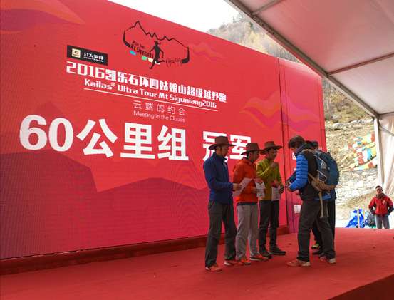 艱難的賽道、高冷的山峰是所有參賽選手都必須面對的挑戰(zhàn),但是在比賽中選手相互幫助的感人場面不時涌現(xiàn)。42公里組的選手王煥和徐超幫助嚴(yán)重高山反應(yīng)的同伴下撤而影響了成績,組委會對他們的人道主義主義精神表示欽佩,并為他們頒發(fā)了獎杯和紀(jì)念品。來自臺北的60公里組參賽者高嘉偉,在關(guān)門時間后抵達終點,組委會對于他的精神和勇氣頒發(fā)敢斗獎。去年參加60公里組,今年完成42公里組的重慶女跑者周曉琳年近六旬,她也獲得組委會的常青獎。