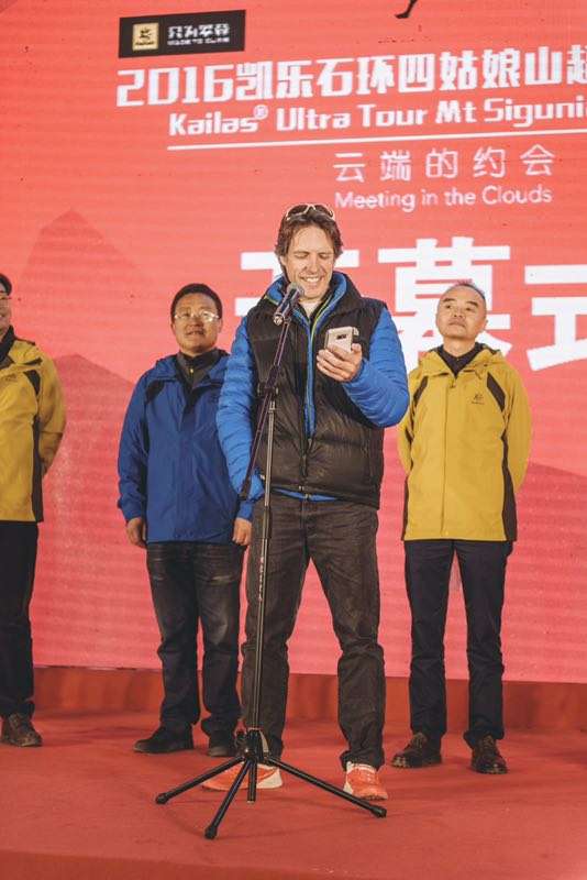 最后阿壩州體育局局長袁禮忠發(fā)言,對各國選手的到來表示熱烈歡迎并宣布2016凱樂石環(huán)四姑娘山越野跑正式開幕!