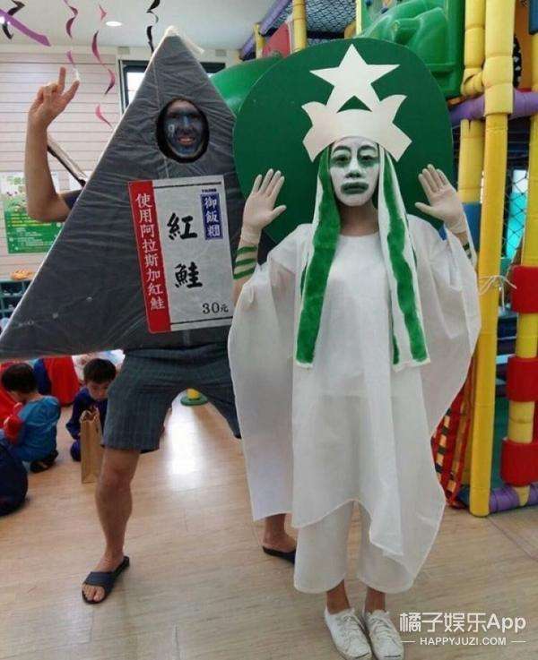 而另一位老師則將自己裝扮成了御飯團(tuán):