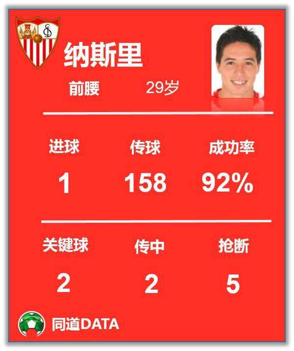 在10月19日,塞維利亞客場(chǎng)挑戰(zhàn)薩格勒布迪納摩的比賽中,納斯里打入全場(chǎng)唯一的進(jìn)球幫助球隊(duì)全取3分。比這粒進(jìn)球更讓人印象深刻的是,納斯里在本場(chǎng)比賽完成令人難以置信的158次傳球,成功率高達(dá)92%,要知道薩格勒布迪納摩全隊(duì)的傳球數(shù)也只有230次而已。此外,法國(guó)人在本場(chǎng)比賽還完成2次關(guān)鍵傳球、2次傳中及5次搶斷。納斯里只用了90分鐘就向世界宣告了自己的強(qiáng)勢(shì)回歸,29歲的“小天鵝”一戰(zhàn)封神。