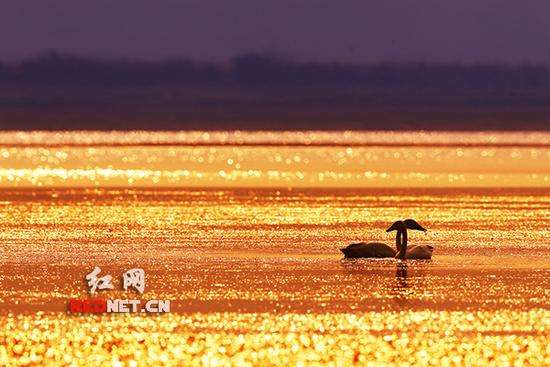 望城大澤湖,波光粼粼的旖旎湖面,天鵝“夫婦”繾綣難分。潘學(xué)兵 攝