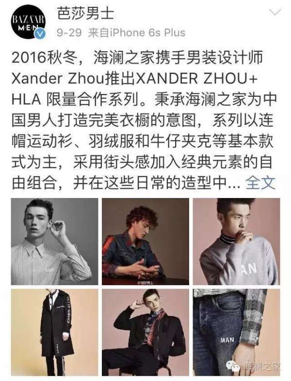 男裝設(shè)計(jì)師XanderZhou合作推出首款設(shè)計(jì)師聯(lián)名系列:XANDER ZHOU+HLA限量合作系列。