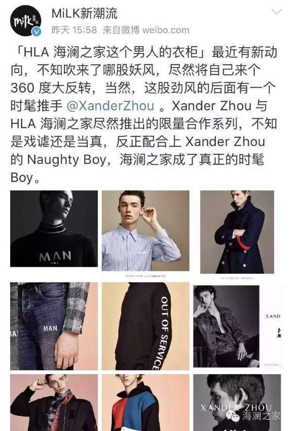 如此密集的持續(xù)曝光讓XANDER ZHOU+HLA系列無(wú)處不在,在京東只售賣(mài)一天的情況下全部售完!這款成衣在海瀾之家以往的國(guó)民屬性之上,吸引了更多潮流圈的目光。而基于海瀾之家與XanderZhou的理念融合,這款限量合作系列的產(chǎn)品本身也體現(xiàn)了更多潮流的發(fā)展可能。