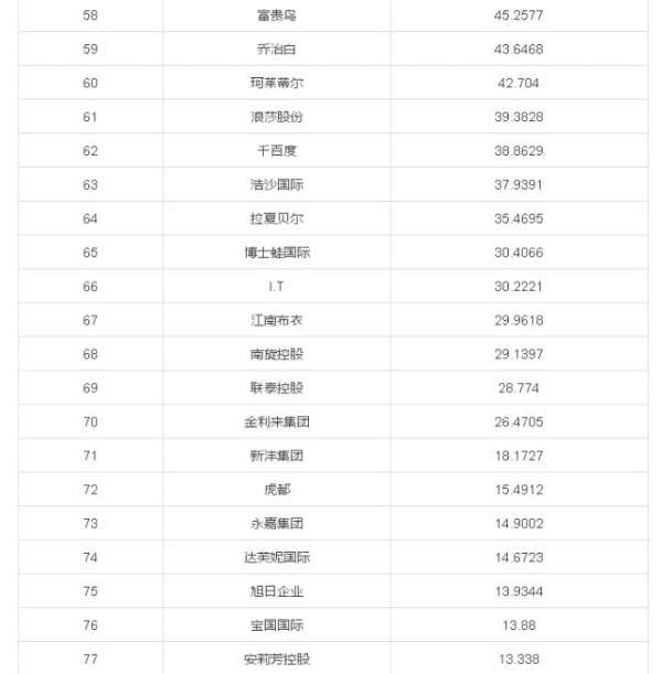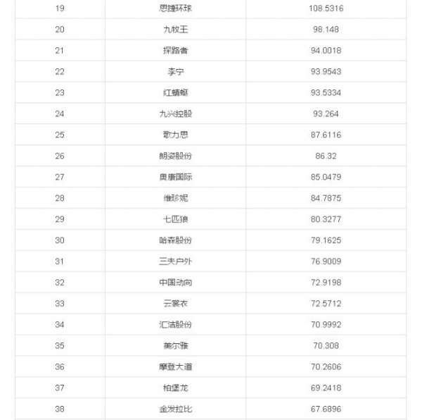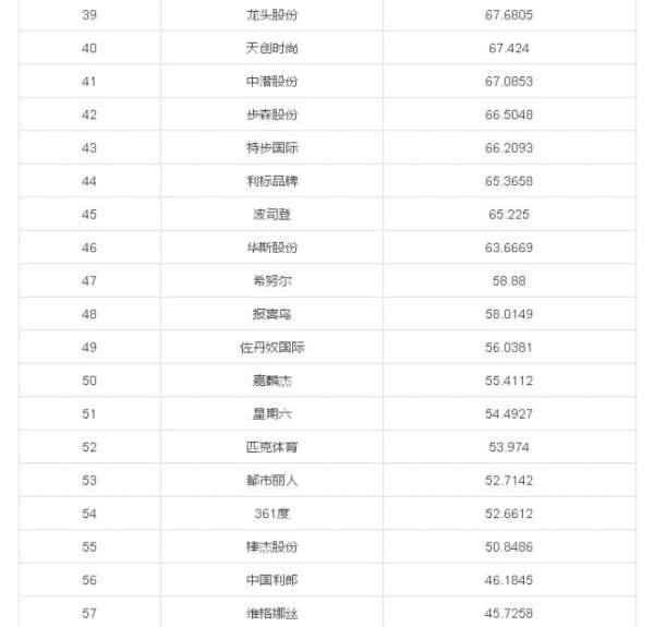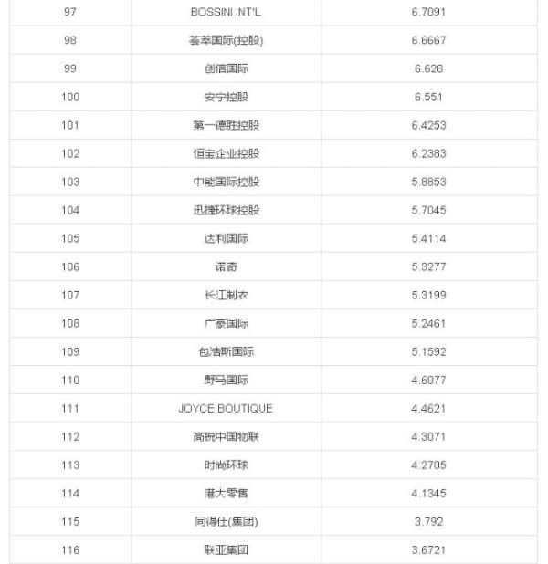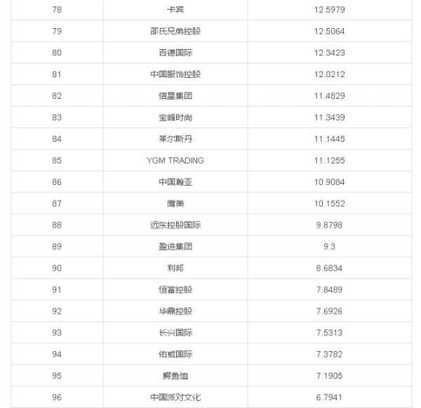 截止2016年10月31日收盤,滬深兩市及港股服裝板塊總市值達8708.69億元,市值排名第一的是申洲國際,目前總市值627.83億元,申洲國際專注于以代工方式生產針織品,其競爭優勢在于其超越對手的生產效率和研發能力,公司提供的一站式生產方案保障了品牌商的