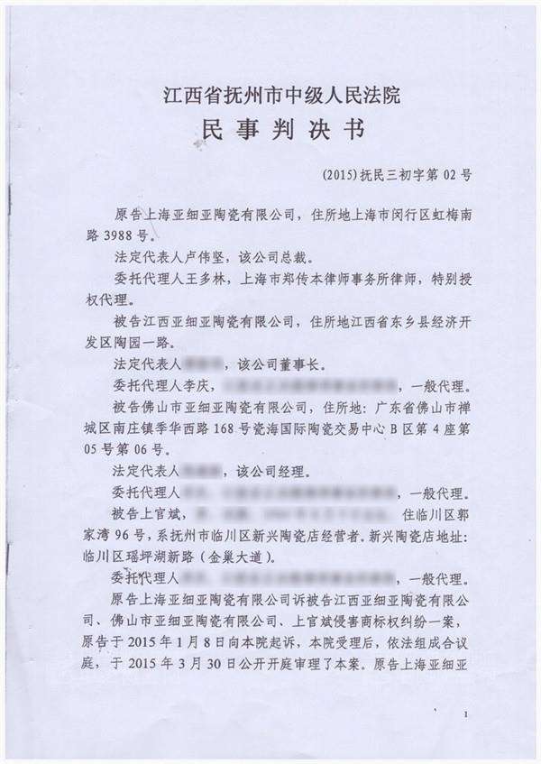 在此,亞細(xì)亞磁磚再一次聲明:所謂的“江西亞細(xì)亞陶瓷有限公司”與上海亞細(xì)亞陶瓷有限公司(亞細(xì)亞磁磚)并無任何隸屬關(guān)系,而是侵犯“亞細(xì)亞”商標(biāo)的侵權(quán)企業(yè)。(其侵權(quán)問題,詳見文末附件:《(2015)撫民三初字第02號民事判決書》)