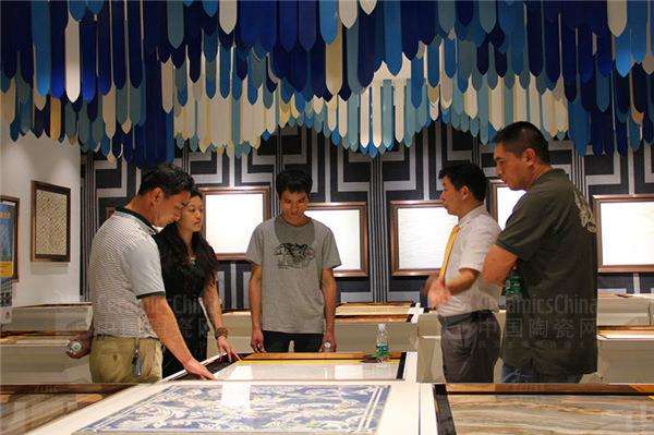 在55°柔光大理石系列展區(qū)交談