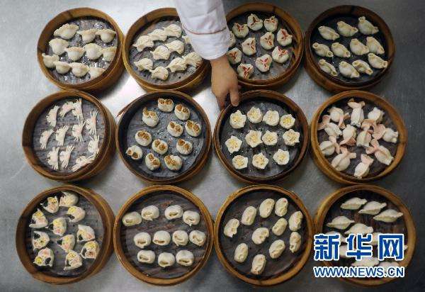 4月21日在沈陽(yáng)老邊餃子館中街店拍攝的各式花色的餃子。新華社發(fā)(李雨澤 攝)