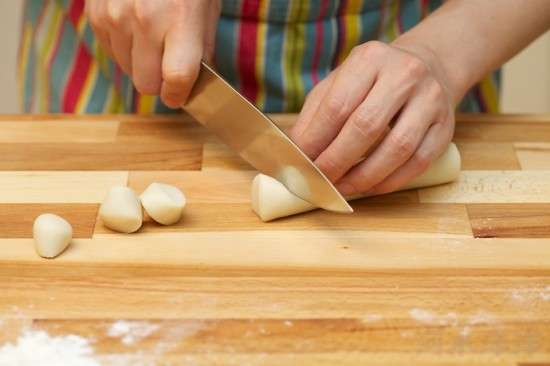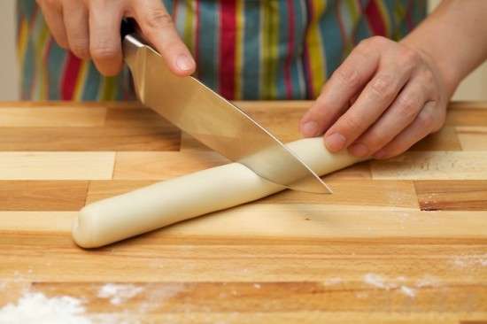 第四步是包餃子。把經(jīng)過松弛的面團(tuán)分成四個(gè)等份,