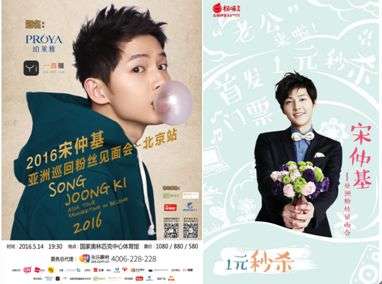 4月18日宋仲基在首爾的粉絲見面會,4000張門票供不應(yīng)求,黃牛票更是炒到了5600元一張。得到消息,早就為 “宋仲基”來華預熱的權(quán)金城,權(quán)味,迅速抓住機會,并做出快速反應(yīng),4月29日通過線上線下——權(quán)金城、權(quán)味的線下門店、官方公眾帳號、支付寶口碑、百度外賣四大平臺主陣地全面啟動權(quán)金城“5月14日宋仲基亞洲粉絲見面會-北京站”門票活動。借助宋仲基本身的號召力,加之活動的易執(zhí)行,啟動當天可謂火爆異常。