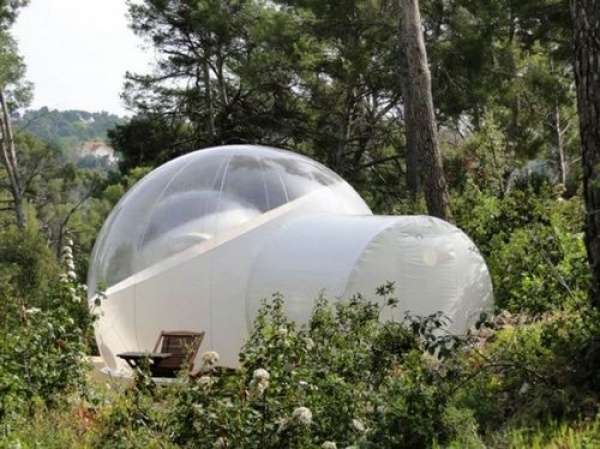 野外露營的時候,總是想躺在草地上望著星空聊聊天,不過冬天太冷,夏天會被蚊蟲掃了興致,如果能在舒適又透明的帳篷里仰望星空就好啦!就這樣,法國的設計師 Pierre-Stéphane Dumas 想象力大爆發(fā),用“泡泡旅館”的設計實現(xiàn)了這個夢幻的想法。