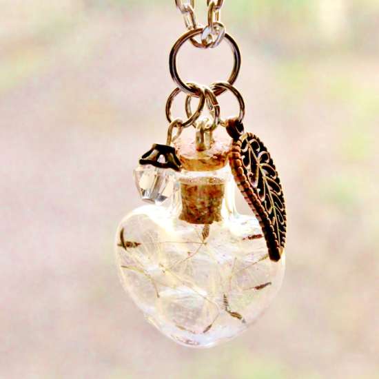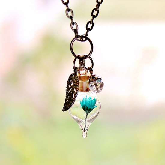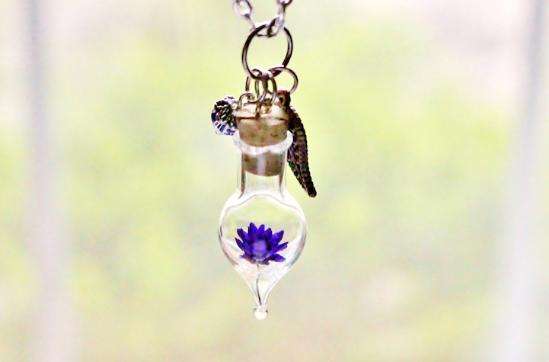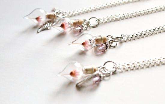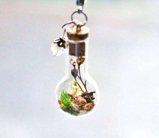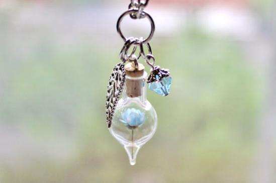 Etsy 店鋪 Tiny Planet preserves 的店主 LD 一直對自然中的小事物非常熱愛,將這愛好化為動(dòng)力, LD 便創(chuàng)作了這一系列水晶球干花項(xiàng)鏈。一花、一葉、一個(gè)玻璃瓶、一串鏈子,就組成了一個(gè)小小的、能隨身帶著走的迷你自然。