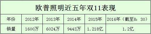 自2012年以來,歐普照明在電商銷量表現愈發強勁。歐普照明近五年來,其雙十一銷量已經翻了好幾倍。