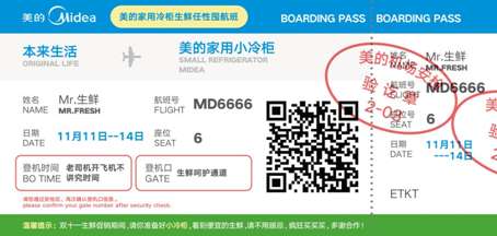 雙11當(dāng)天,在本來(lái)生活網(wǎng)購(gòu)買促銷生鮮的用戶們表示“第一次收到這樣的快遞盒,很驚喜”。原來(lái),這是美的冷柜專門定制的王嘉爾限量快遞盒,快遞盒中還藏有美的冰柜準(zhǔn)備的驚喜“機(jī)票”一張,機(jī)票上顯示的乘客是Mr.生鮮,將由本來(lái)生活飛往美的冷柜,提醒乘客“生鮮大促隨意購(gòu)”、“海鮮蔬果任意囤”、“購(gòu)物列表一次清”,“一個(gè)冷柜就夠了”,創(chuàng)意十足。