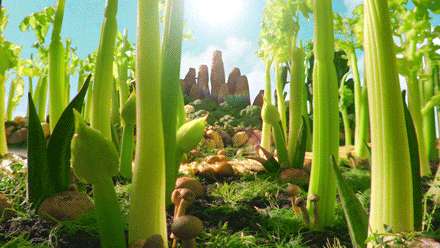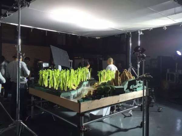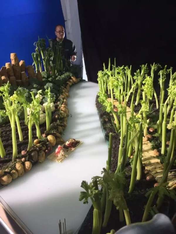 為了搭建這個(gè)蔬菜森林的景,整個(gè)團(tuán)隊(duì)用了整整5天完成搭建,中間的蔬菜換了兩遍。