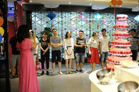 在7層蛋糕面前,30歲的何女士被感動的熱淚盈眶,她告訴記者:“和男朋友今年準備九月結婚的,沒想到他會在七夕前準備一場求婚,親戚朋友都來了,不僅浪漫而且實在,在小肥羊一起吃著火鍋,就像一起過日子踏踏實實!