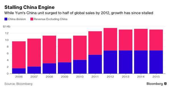 到2012年,百勝集團(tuán)的中國(guó)業(yè)務(wù)激增至公司全球銷(xiāo)售額的一半,但之后增速陷于停滯