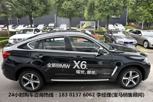 凡近期在本店購寶馬X6可現金最高優惠35萬,另可獲得價值3.58萬禮包禮包內容(選裝):全車膜(進口)、地膠、腳墊、涼墊、把套、麂皮、撣子、發動機護板、車身封釉、地盤封塑、后艙墊、行李架、腳踏板、前后保險杠、DVD導航、原廠導航、倒車影像、倒車雷達、真皮座椅、擋泥板
