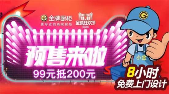 行業(yè)都在為即將來臨的雙11龐大客流做充分準(zhǔn)備,作為2015年度天貓廚柜品牌銷售冠軍,10月30日,金牌廚柜繼續(xù)放大招,聯(lián)合天貓發(fā)布全國(guó)百城“8小時(shí)免費(fèi)上門設(shè)計(jì)”,并在現(xiàn)場(chǎng)舉行了隆重的金牌廚柜和天貓的百城簽約儀式,聚焦核心服務(wù)能力的打造,8小時(shí)迅速響應(yīng),以行業(yè)領(lǐng)先的金牌服務(wù)備戰(zhàn)雙11。