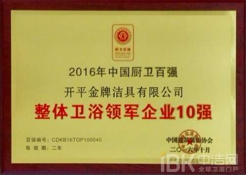 憑著先進的產品工藝,高度創(chuàng)新和人性化的產品設計,以及強大的品牌知名度和綜合實力,金牌衛(wèi)浴再度榮獲中國廚衛(wèi)百強“整體衛(wèi)浴領軍企業(yè)10強”。